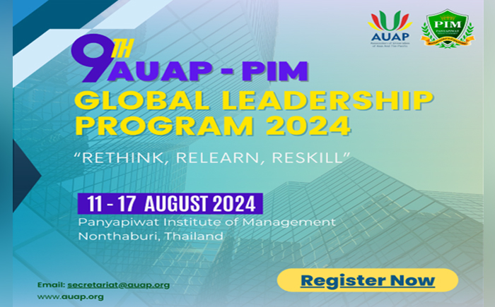 The Association of Universities in Asia and the Pacific (AUAP), in collaboration with Panyapiwat Institute of Management, will organize the 9th Global Leadership Program in Nonthaburi, Bangkok, Phra Nakhon Si Ayutthaya, and Pattaya City, Thailand, from August 11th to 17th, 2024.